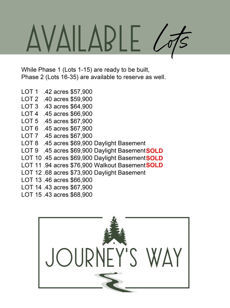 Welcome to Journey’s Way, the newest premier residential community in Hastings, Michigan that is now available. This gorgeous and serene new development includes 35 large lots sized nearly 1/2 acre and up, in a picturesque wooded setting. Bring your own builder or select from one of our modern and distinguished home plans offered by developer Carl Algera of Lonestar Construction, who has 40 years experience crafting custom residential and commercial spaces. Carl is known for his ability to add affordable custom details to your home to separate it from all the masses. Journey’s Way is conveniently located close to downtown Hastings, MI and it’s historic downtown on the Thornapple River. Just a short distance from US 131, Journey’s Way is centrally located to retail shopping, restaurants, and within the Thornapple Kellogg School District.